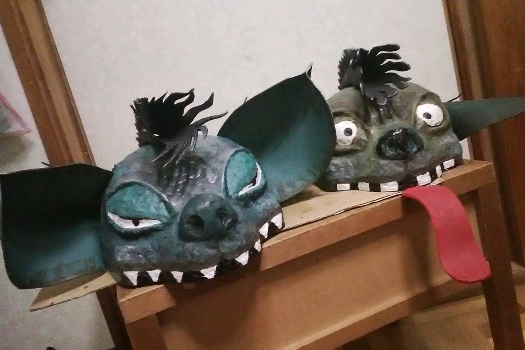 ラジコンパーツ、劇で使うお面、プルバックカーの